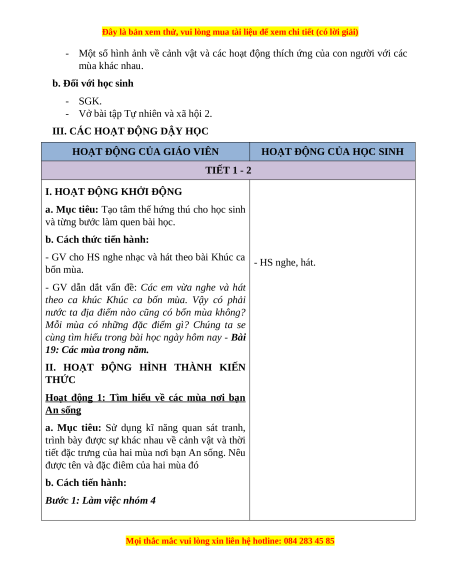 BÀI 19: CÁC MÙA TRONG NĂM (4 tiết) I. MỤC TIÊU
