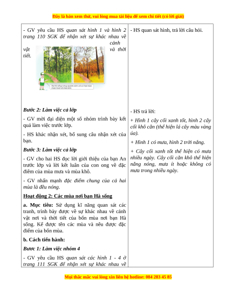 sống. Kể được tên các mùa và nêu được đặc điểm của bốn mùa. b. Cách tiến hành: