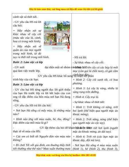 + Nơi bạn Hà sống có mấy mùa, là những mùa hoi lạnh (thể hiện qua người mặc áo nào? khoác mỏng).