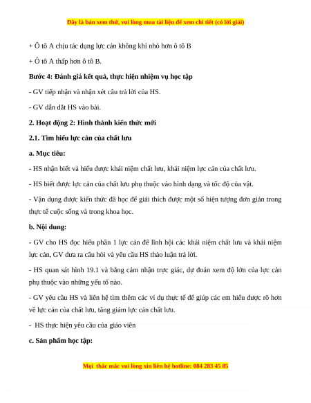 2.1. Tìm hiểu lực cản của chất lưu a. Mục tiêu: