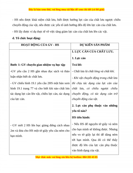 - HS biết được lực cản của chất lưu phụ thuộc vào hình dạng và tốc độ của vật.