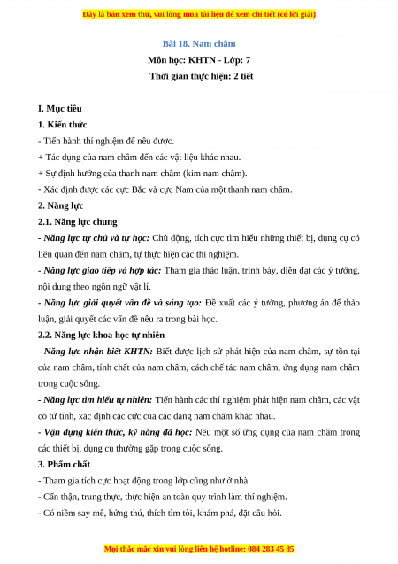 - Năng lực nhận biết KHTN: Biết được lịch sử phát hiện của nam châm, sự tồn tại
