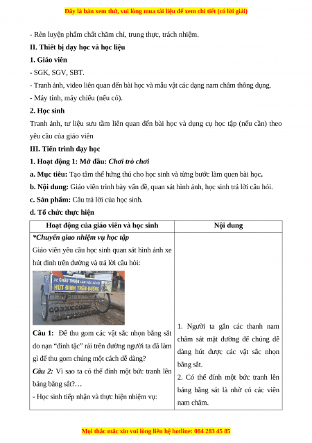 Câu 1: Để thu gom các vật sắc nhọn bằng sắt châm sát mặt đường để chúng dễ