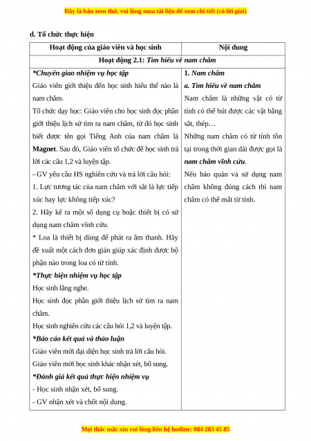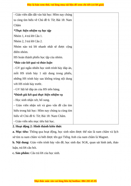 Magnet. Sau đó, Giáo viên tổ chức để học sinh trả
