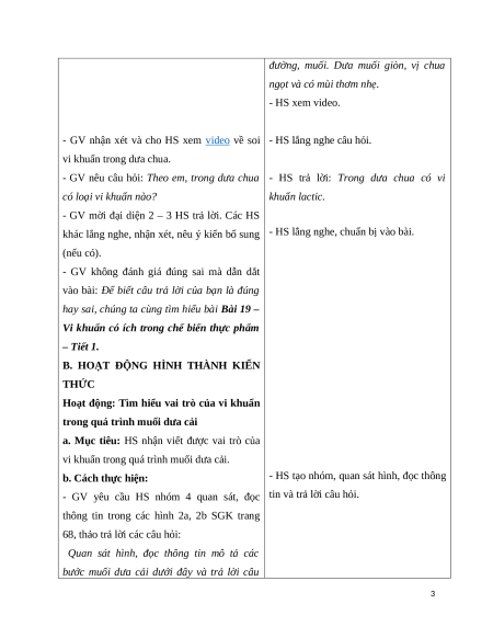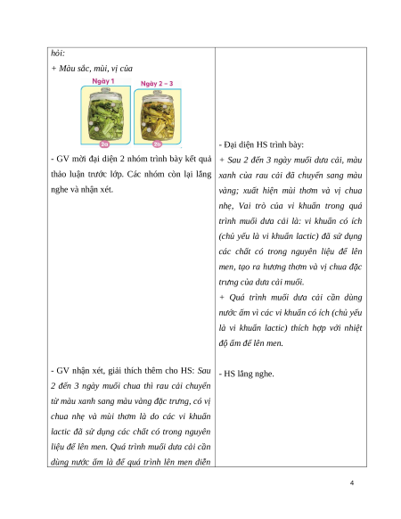 - Nêu được vai trò của vi khuẩn trong quá trình muối dưa cải.