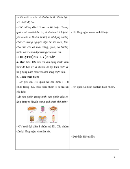 Giáo án Bài 19: Vi khuẩn có ích trong chế biến thực phẩm Khoa học lớp 5 Chân trời sáng tạo