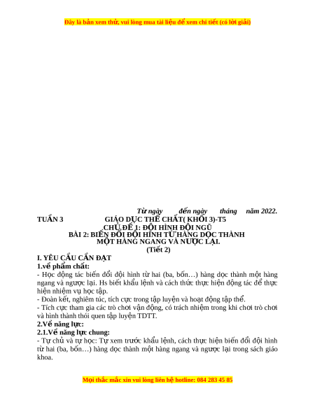 tháng năm 2022. TUẦN 2 GIÁO D C Ụ THỂ CHẤT( KH I Ố 3)- T4 CH Đ Ủ Ề 1: Đ I Ộ HÌNH Đ I Ộ NGŨ BÀI 2: BIẾN Đ I Ổ Đ I Ộ HÌNH T Ừ HÀNG D C Ọ THÀNH M T
