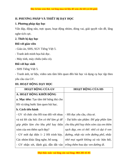 II. PHƯƠNG PHÁP VÀ THIẾT BỊ DẠY HỌC