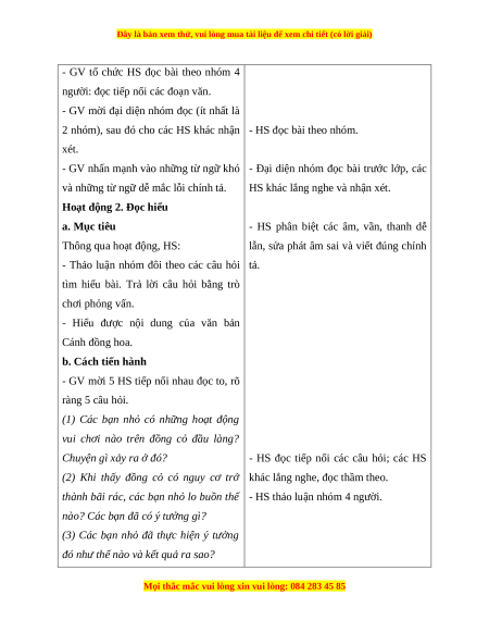 - Hiểu được nội dung của văn bản Cánh đồng hoa. b. Cách tiến hành
