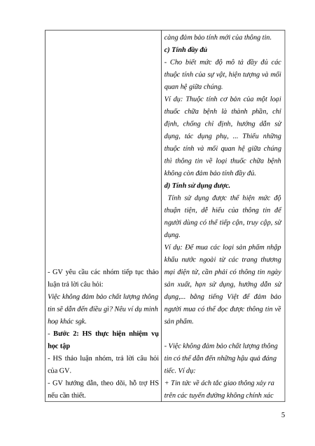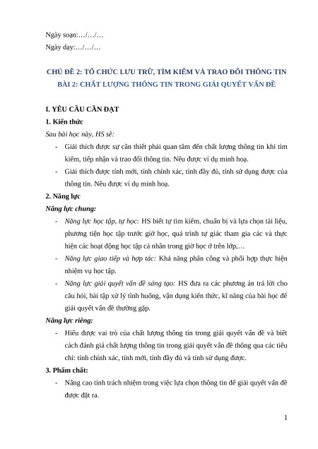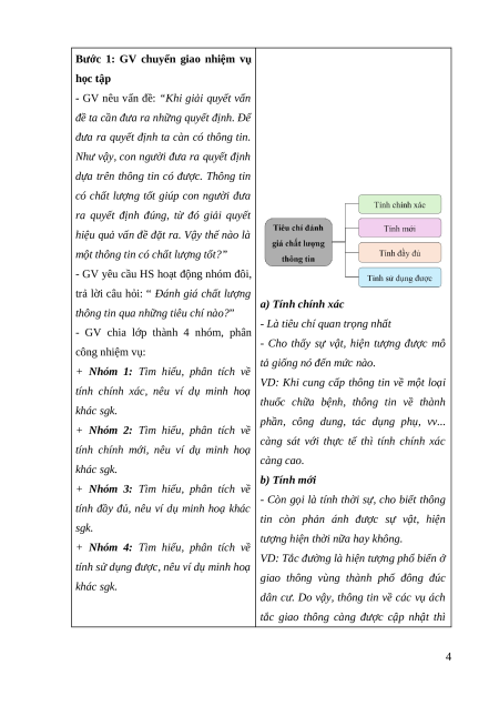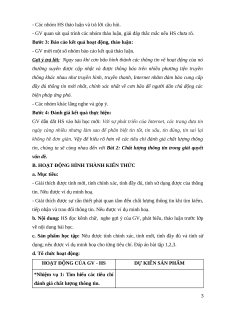 Giáo án Bài 2: Chất lượng thông tin trong giải quyết vấn đề Tin học 9 Chân trời sáng tạo