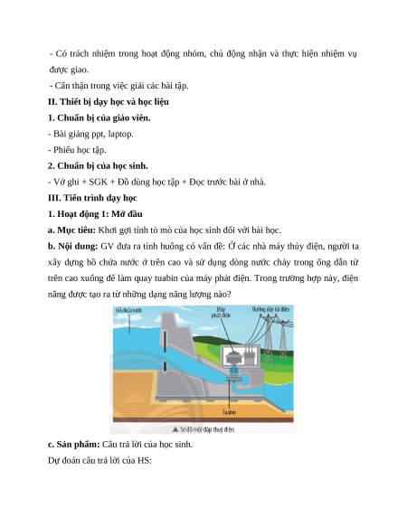 b. Nội dung: GV đưa ra tình huống có vấn đề: Ở các nhà máy thủy điện, người ta