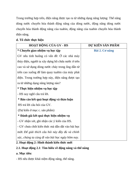 2.1. Hoạt động 2.1: Tìm hiểu về động năng và thế năng a. Mục tiêu: