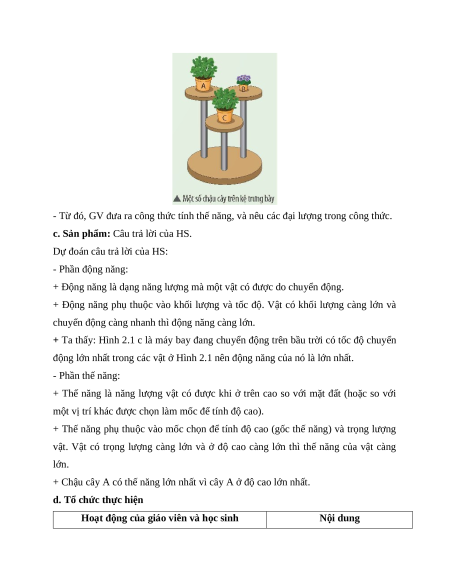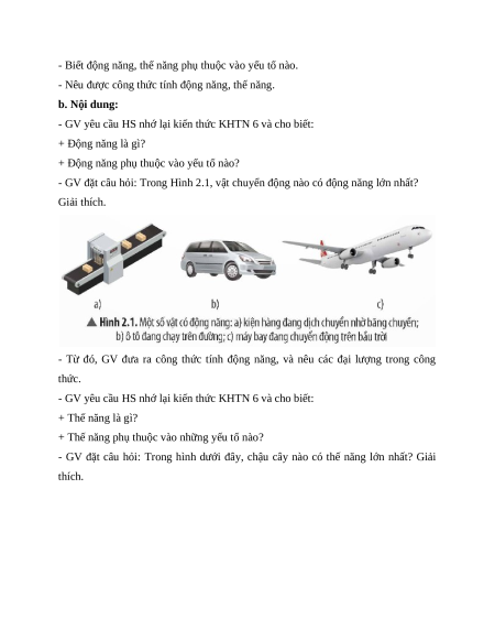 - Nêu được công thức tính động năng, thế năng. b. Nội dung: