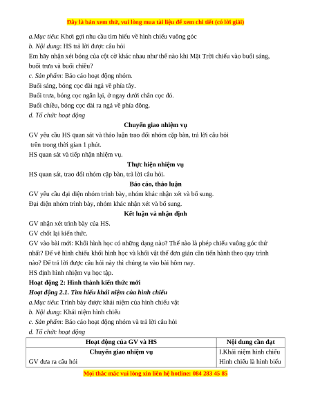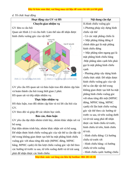 - Năng lực giải quyết vấn đề: Giải quyết được các tình huống đặt ra có liên quan đến hình chiếu vuông góc. 3. Phẩm chất