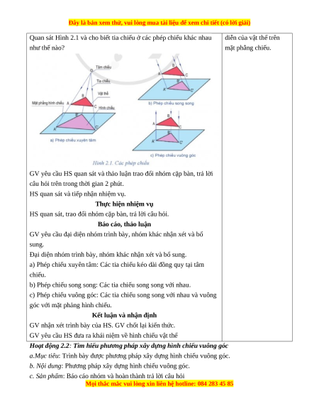 Hoạt động 2.2: Tìm hiểu phương pháp xây dựng hình chiếu vuông góc