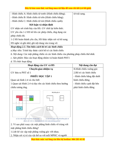 - Giao tiếp công nghệ: Sử dụng được một số thuật ngữ để trình bày được hình chiếu vuông góc.