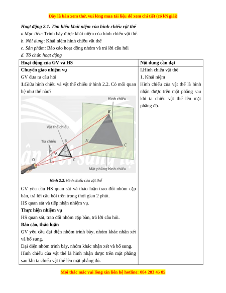 Hoạt động 2.1. Tìm hiểu khái niệm của hình chiếu vật thể