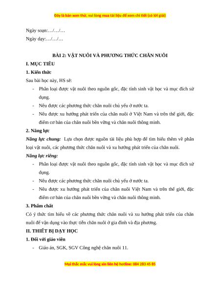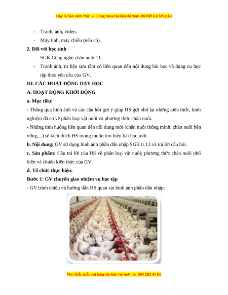 - Giáo án, SGK, SGV Công nghệ chăn nuôi 11.