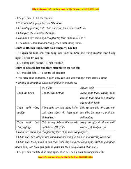 c. Sản phẩm: Câu trả lời của HS về phân loại vật nuôi; phương thức chăn nuôi phổ