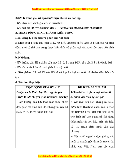 đồng thời có thể vận dụng được kiến thức về phân loại vật nuôi vào thực tiễn chăn nuôi. b. Nội dung: