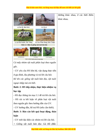 - GV hướng dẫn HS thảo luận theo nhóm + Vật nuôi bản địa: những vật nuôi