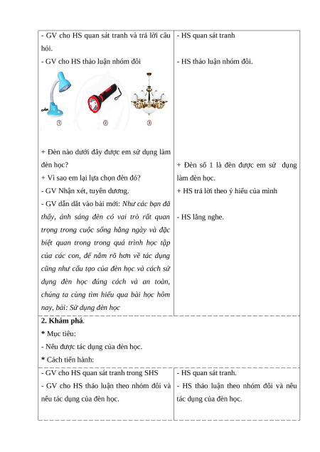 nay, bài: Sử dụng đèn học 2. Khám phá. * Mục tiêu: