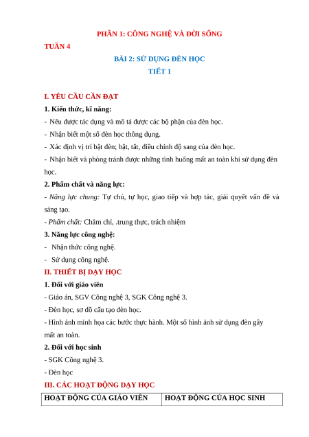 BÀI 2: SỬ DỤNG ĐÈN HỌC TIẾT 1
