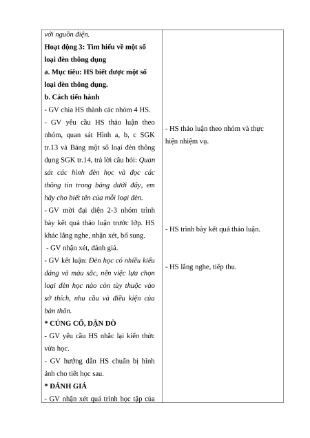 - Nhận biết một số đèn học thông dụng.
