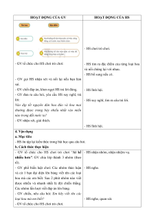 - GV tổ chức cho HS chơi trò chơi. - HS chơi trò chơi.
