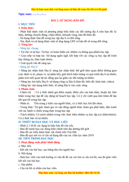 BÀI 2: SỬ DỤNG BẢN ĐỒ I. MỤC TIÊU 1. Kiến thức: