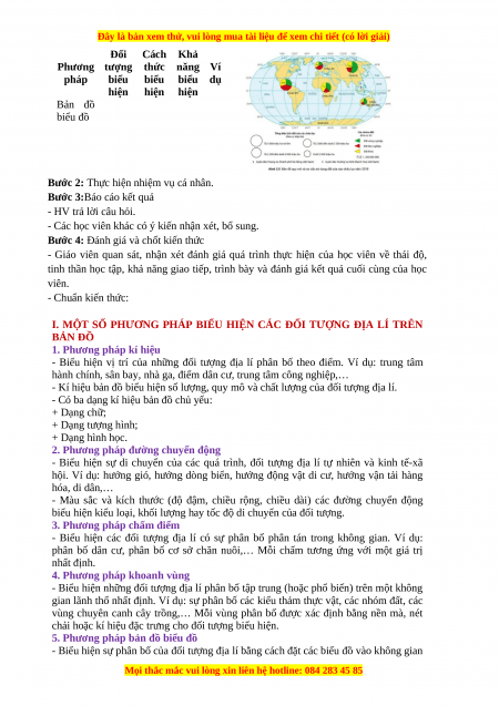 - Trình bày được đặc điểm của các phương pháp biểu hiện các đối tượng địa lí trên bản
