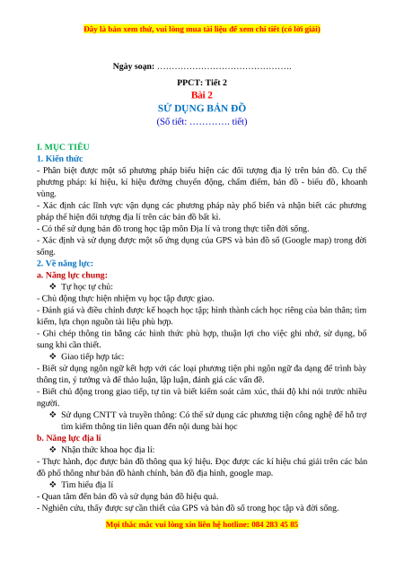 Ngày soạn: ………………………………………. PPCT: Tiết 2 Bài 2 SỬ DỤNG BẢN ĐỒ