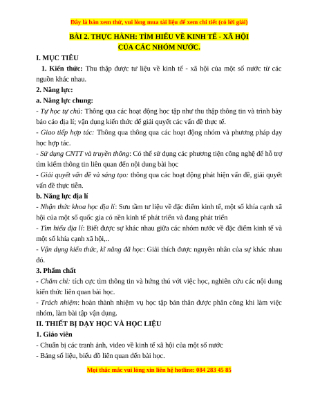Giáo án Bài 2 Địa lí 11 Chân trời sáng tạo (2024): Thực hành: Tìm hiểu về kinh tế - xã hội của các nhóm nước