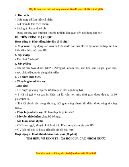 - Các từ cần đoán được: GDP, GNI/người, nhóm tuổi, văn hóa, dân số già, giáo dục,