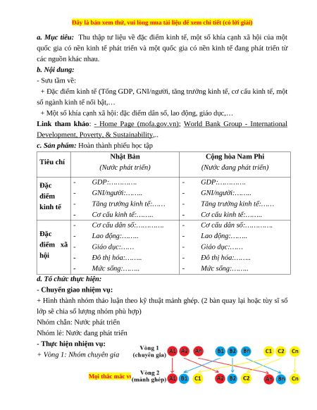 c. Sản phẩm: Hoàn thành phiếu học tập Nhật Bản Cộng hòa Nam Phi Tiêu chí