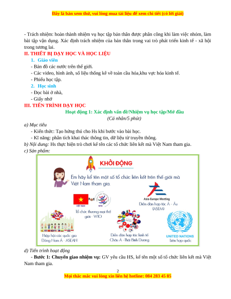 - Bước 1: Chuyển giao nhiệm vụ: GV yêu cầu HS, kể tên một số tổ chức liên kết mà Việt Nam tham gia. 2
