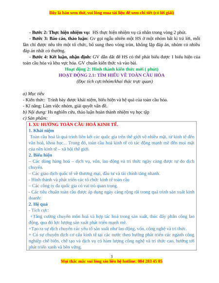 BÀI 2. TOÀN CẦU HÓA , KHU VỰC HÓA KINH TẾ (02 tiết) I. MỤC TIÊU 1. Kiến thức