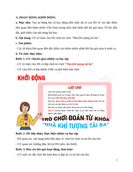b. Nội dung: GV tổ chức cho HS chơi trò chơi “Nhà khí tượng tài ba”. c. Sản phẩm: