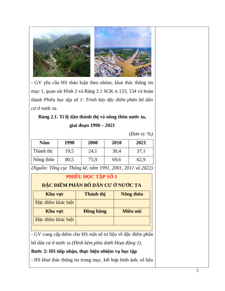 - GV trình chiếu hình ảnh và dẫn dắt: Phân bố dân cư nước dân cư Việt Nam