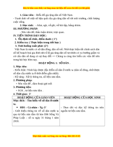 ọ sinh: - Atlat, sgk, v ghi ở , v bài ở t p, ậ b ng nhóm ả . III. PHƯ N Ơ G PHÁP: - Nêu vấn đ ; ề th o l ả u n ậ nhóm; tr c quan. ự IV. TI N Ế TRÌNH D Y Ạ H C Ọ : 1. Ổn đ nh t ị ch ổ c, ứ đi m ể danh: ( 1’) 2. Ki m ể tra: ( Th c hi ự n t ệ rong ti t ế h c ọ ) 3. Tình hu ng ố xu t ấ phát: (2’) Vi t ệ Nam là nư c ớ có s ố dân đông, dân s ố tr . ẻ Nh ờ th c ự hi n ệ t t ố chính sách dân số kế ho ch