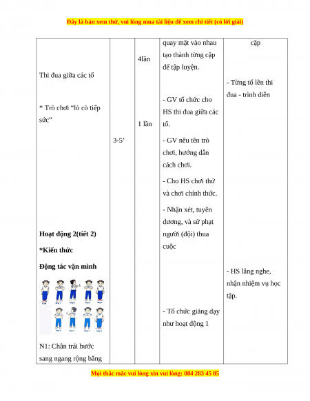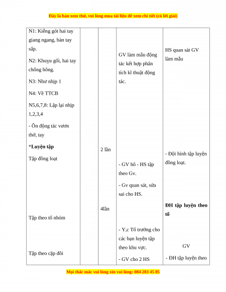 - Phương pháp dạy học chính: Làm mẫu, sử dụng lời nói, tập luyện, trò chơi và thi