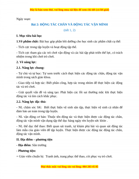 Bài 2: ĐỘNG TÁC CHÂN VÀ ĐỘNG TÁC VẶN MÌNH (tiết 1, 2)