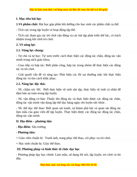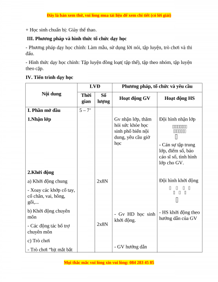 - Phương pháp dạy học chính: Làm mẫu, sử dụng lời nói, tập luyện, trò chơi và thi đấu.