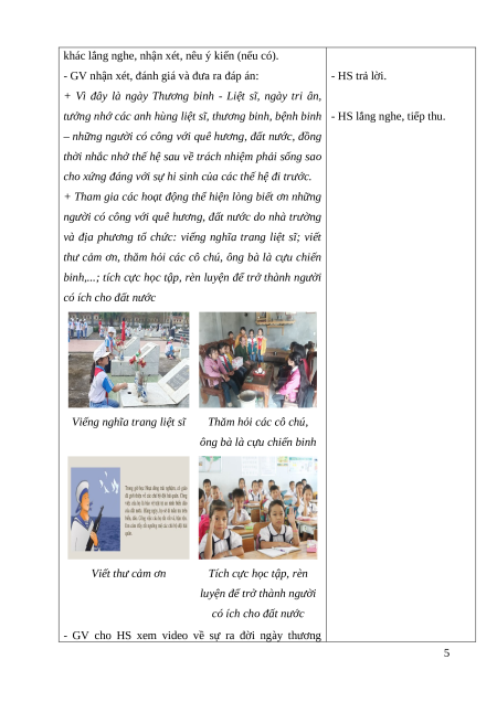 hợp với lứa tuổi thể hiện lòng biết ơn người có công