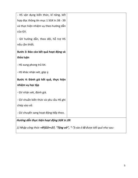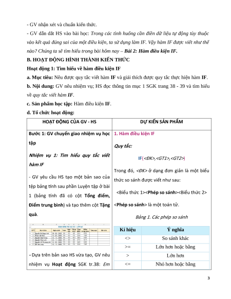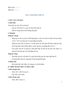 Giáo án Bài 2: Hàm điều kiện IF Tin học 9 Cánh diều
