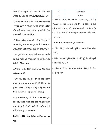 Nhiệm vụ 1: Tìm hiểu quy tắc viết IF(<ĐK>,,) hàm IF