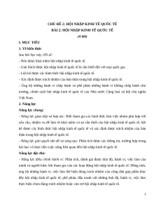 BÀI 2: HỘI NHẬP KINH TẾ QUỐC TẾ (4 tiết) I. MỤC TIÊU 1. Về kiến thức