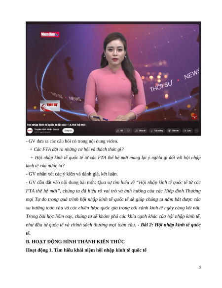 - GV cho HS xem đoạn video “Hội nhập kinh tế quốc tế từ các FTA thế hệ mới”.