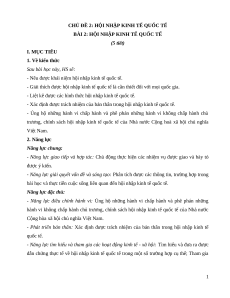 BÀI 2: HỘI NHẬP KINH TẾ QUỐC TẾ (5 tiết) I. MỤC TIÊU 1. Về kiến thức