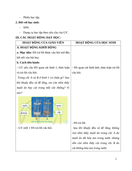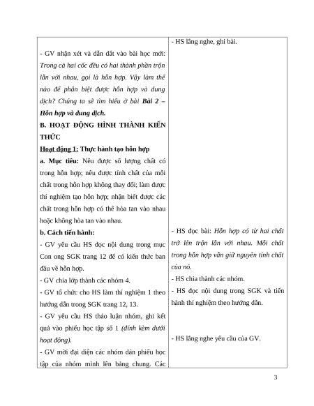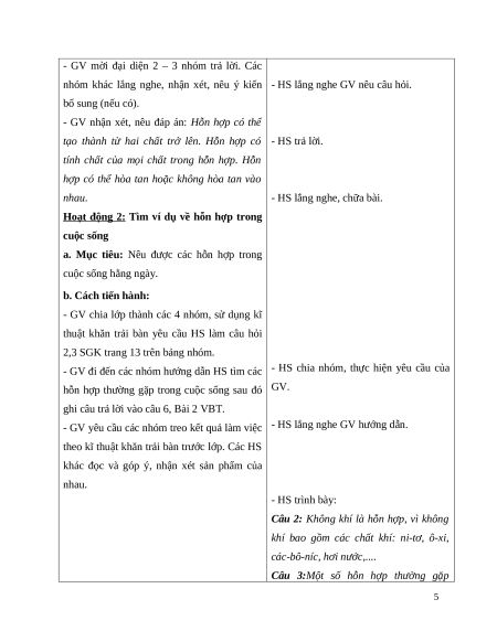 Giáo án Bài 2: Hỗn hợp và dung dịch Khoa học lớp 5 Cánh diều